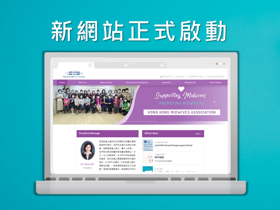本會今天(2021年3月1日) 推出重新設計的香港助產士會網頁,網址是:https://www.midwives.org.hk/