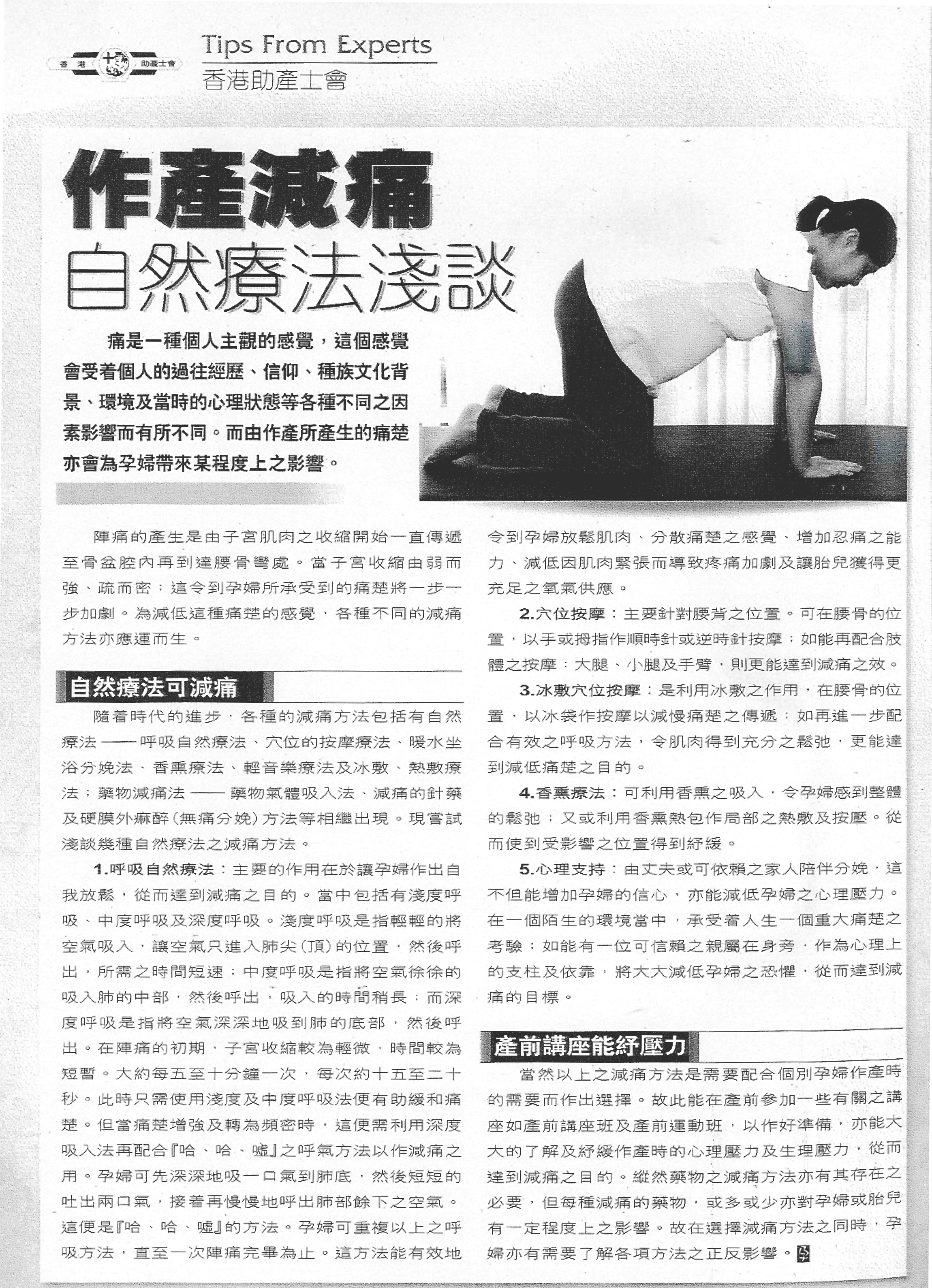 於孕媽媽雜誌所刊載文章: 作產減痛-自然療法淺談