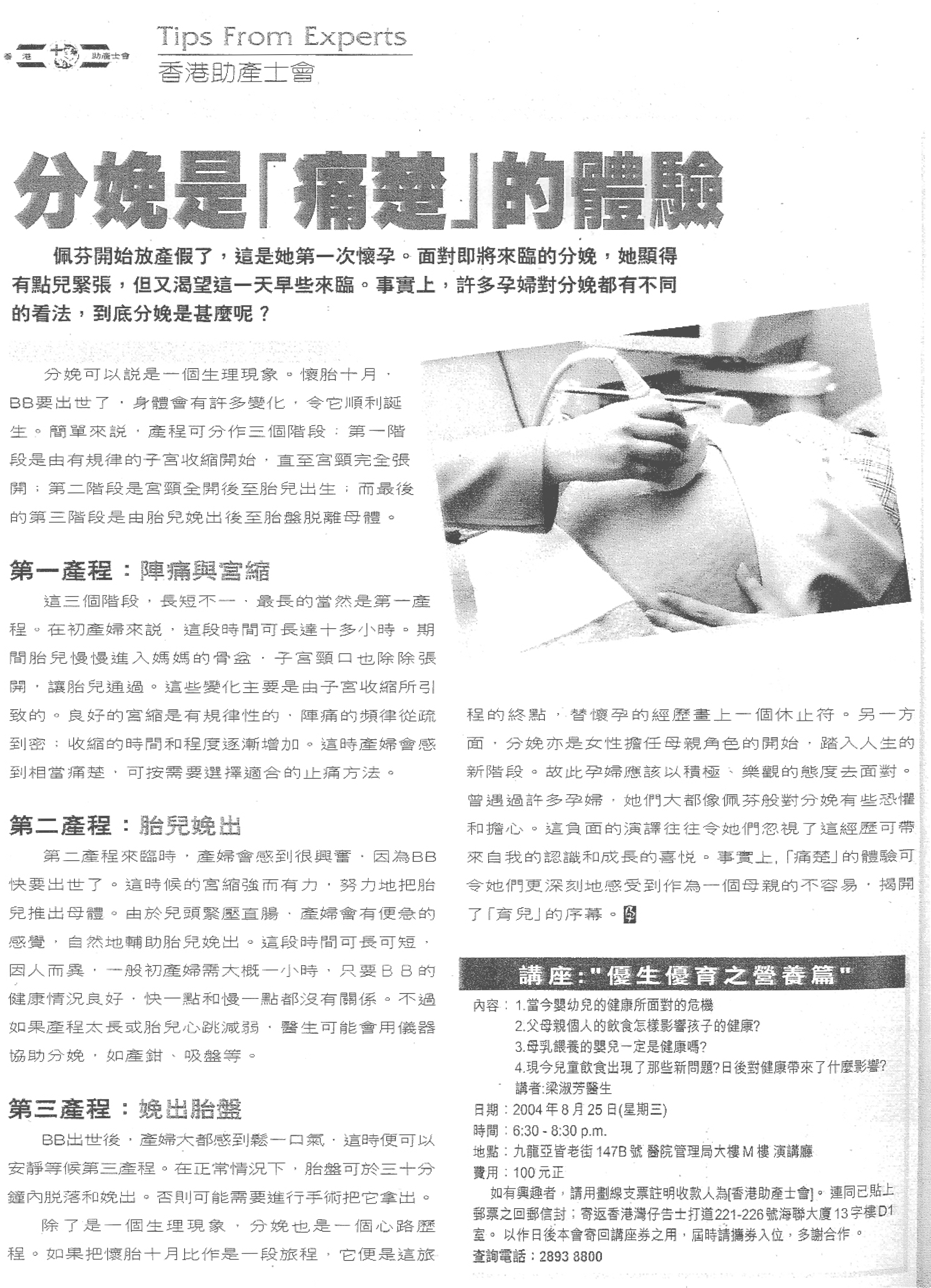 於孕媽媽雜誌所刊載文章: 分娩是痛楚的體驗