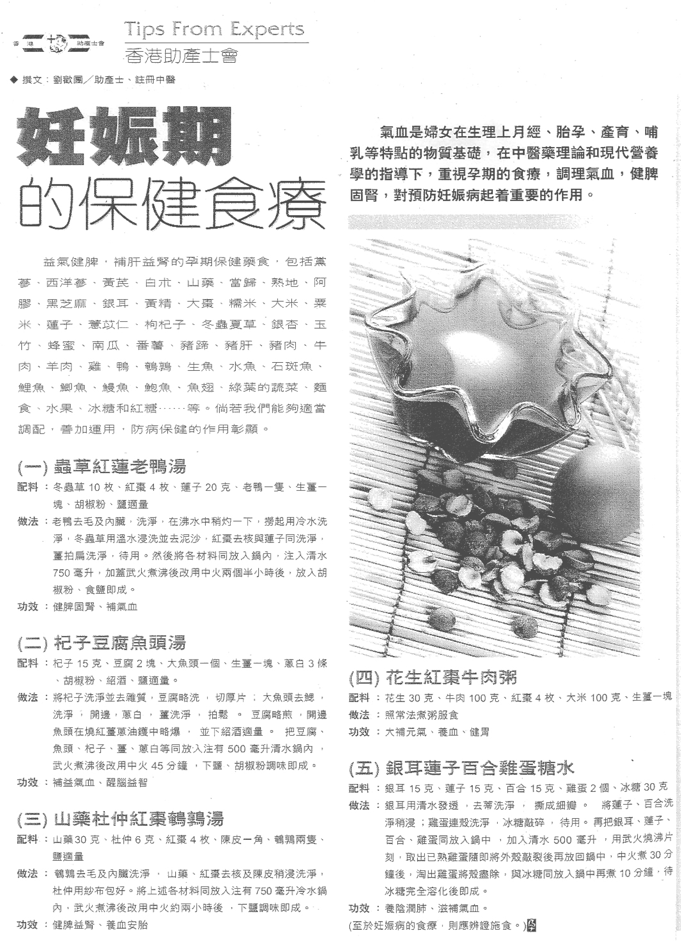 於孕媽媽雜誌所刊載文章: 妊娠期的保健食療