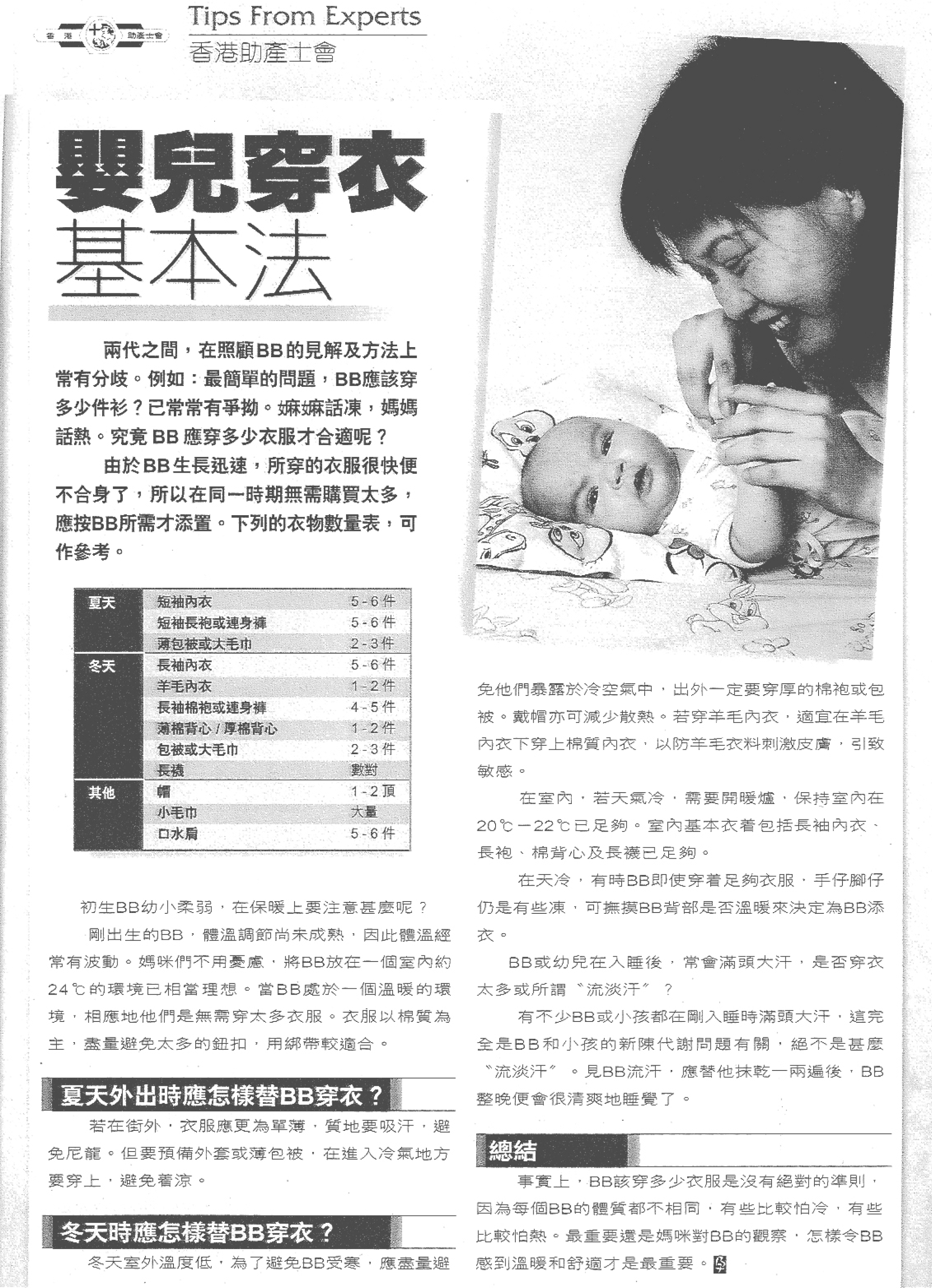 於孕媽媽雜誌所刊載文章: 嬰兒穿衣基本法