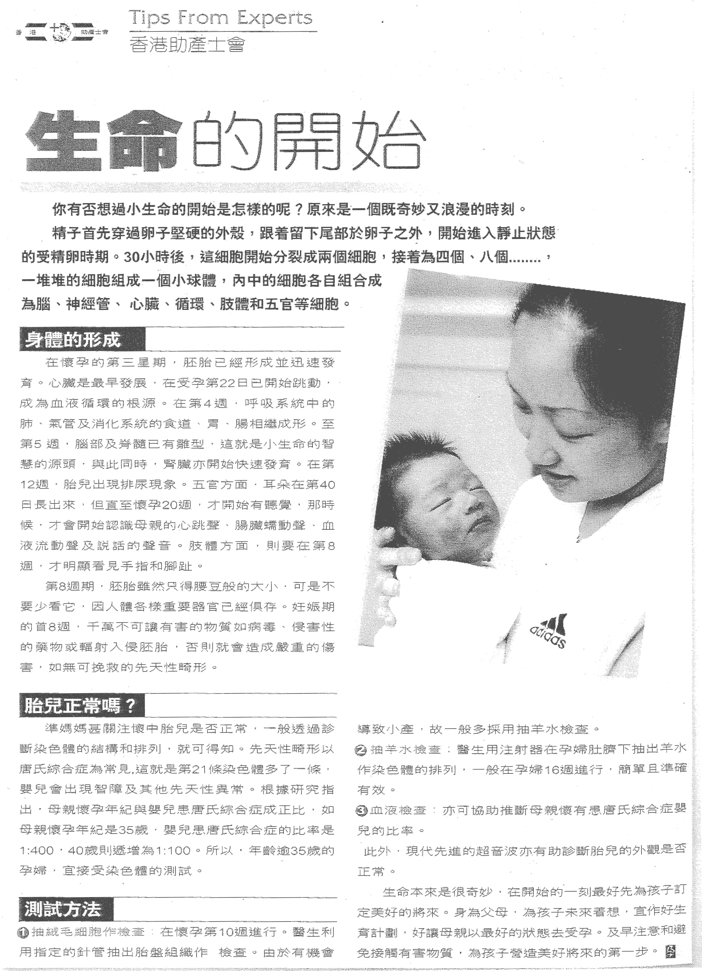 於孕媽媽雜誌所刊載文章: 生命的開始