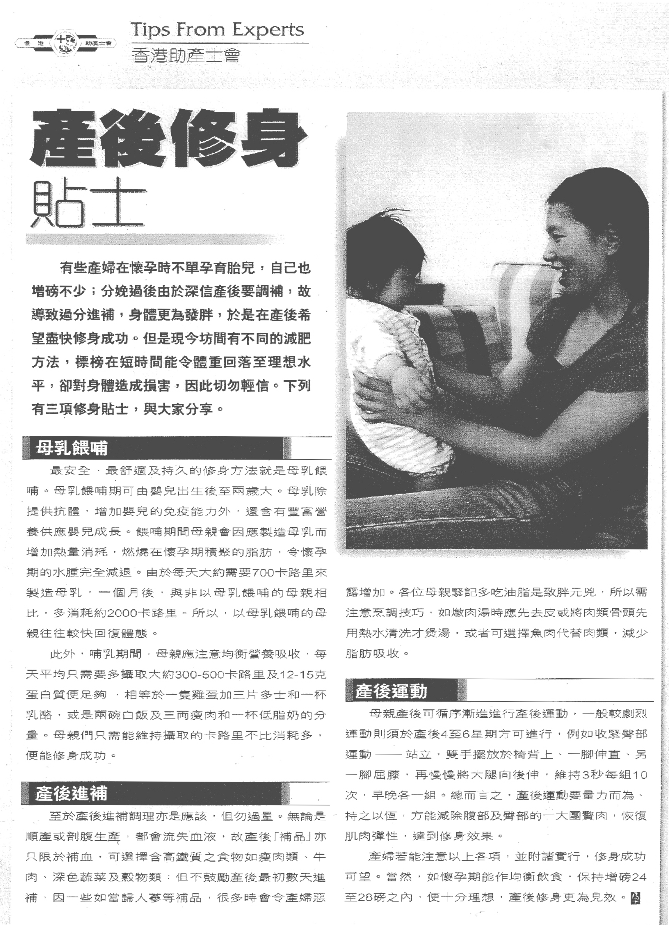 於孕媽媽雜誌所刊載文章: 產後修身貼士