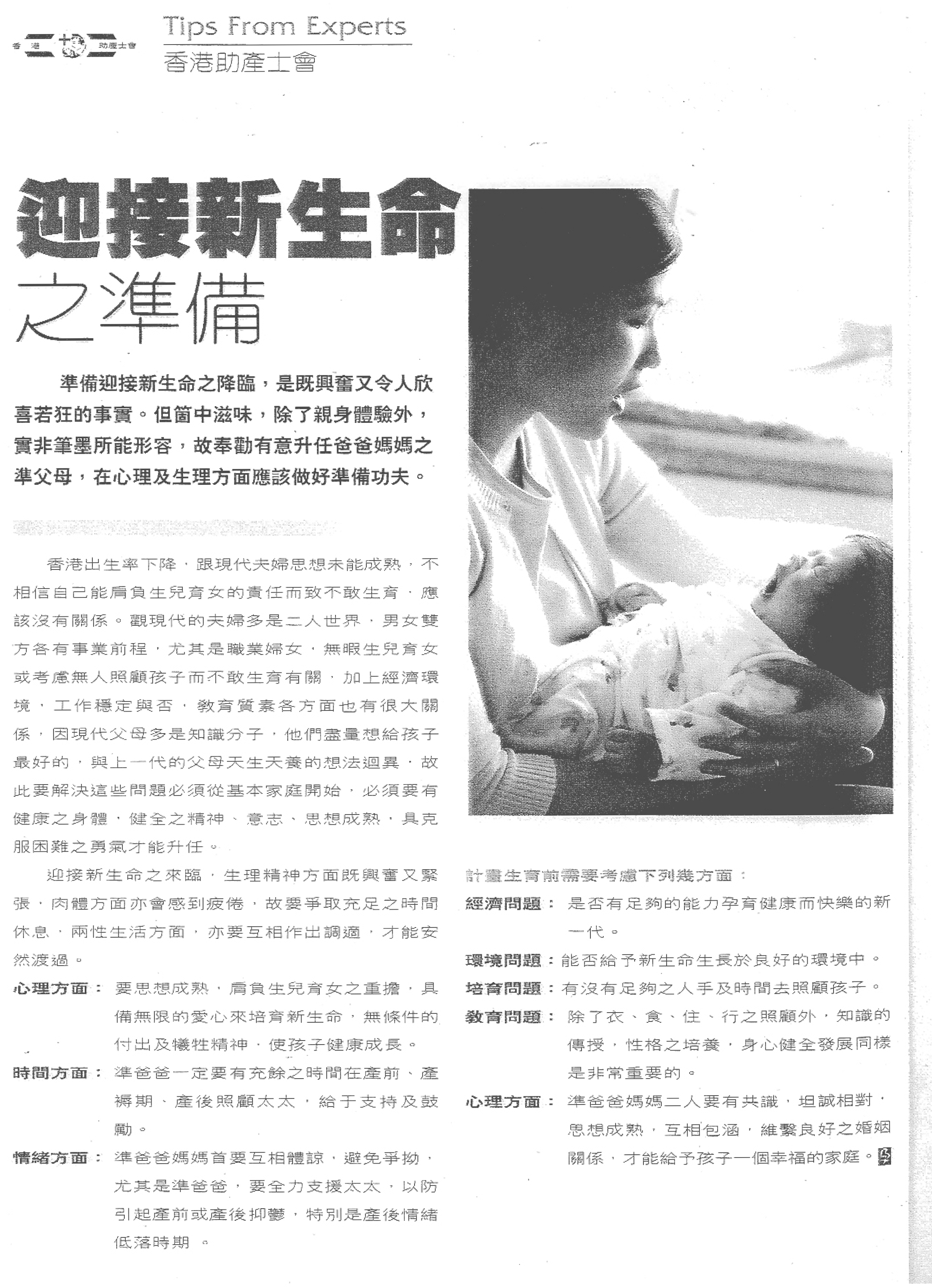 於孕媽媽雜誌所刊載文章: 迎接新生命之準備